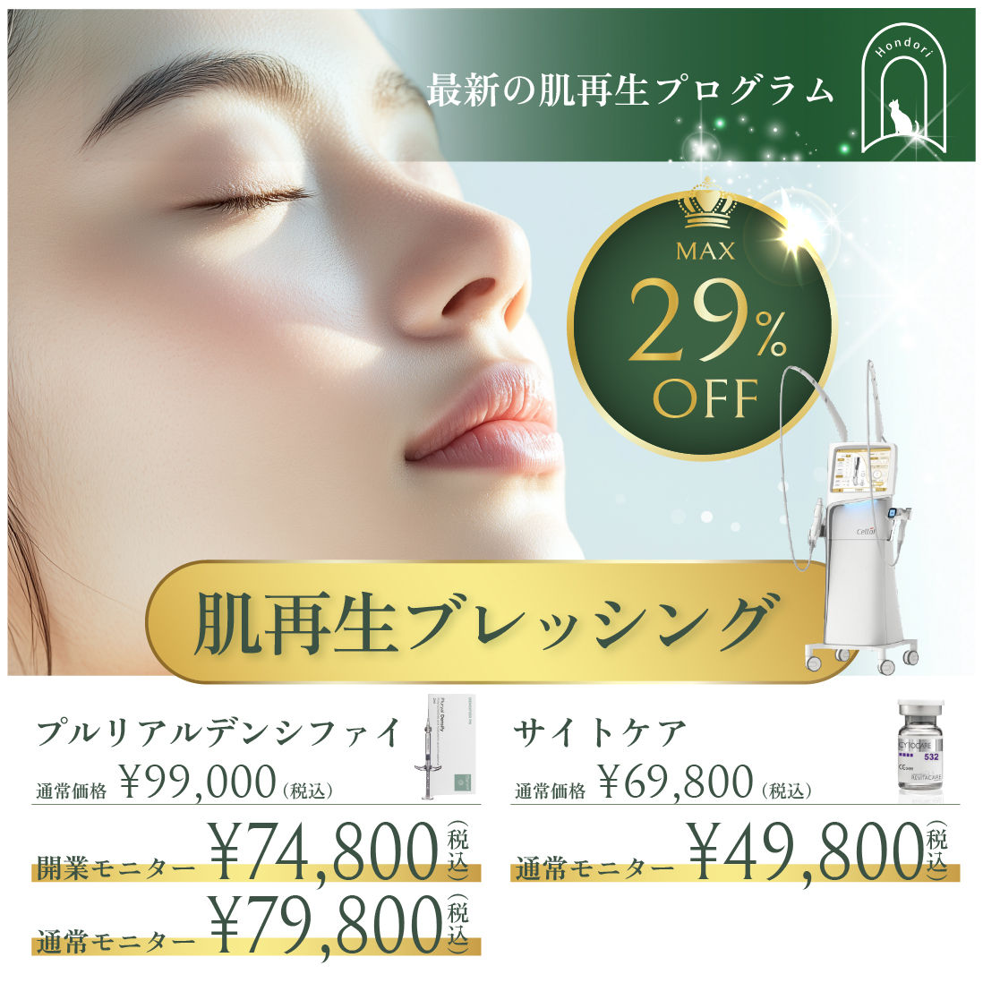 開院を記念して、人気の肌再生治療「ブレッシング」を 特別モニター価格でご案内しています。