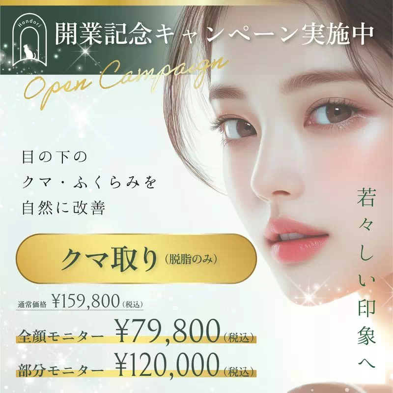 開院を記念して、当院の人気施術「クマ取り(脱脂)」を