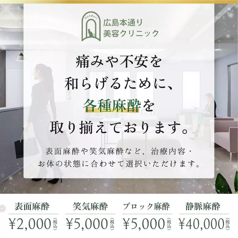 「痛みに弱い方」「はじめての施術で不安がある方」も、医師が事前に丁寧にカウンセリングを行い、最適な麻酔方法をご提案いたします。